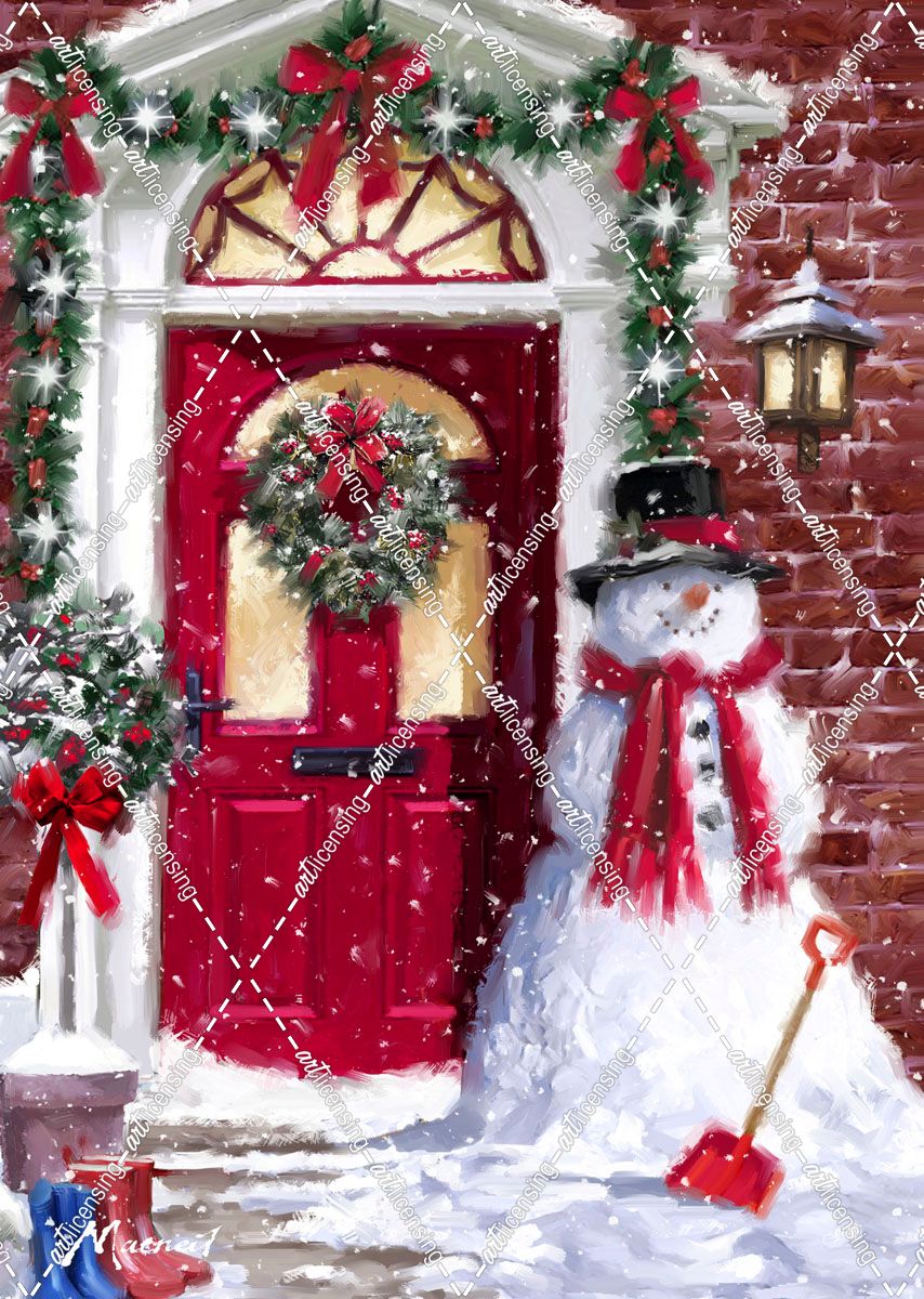 0486 Red Door Snowman