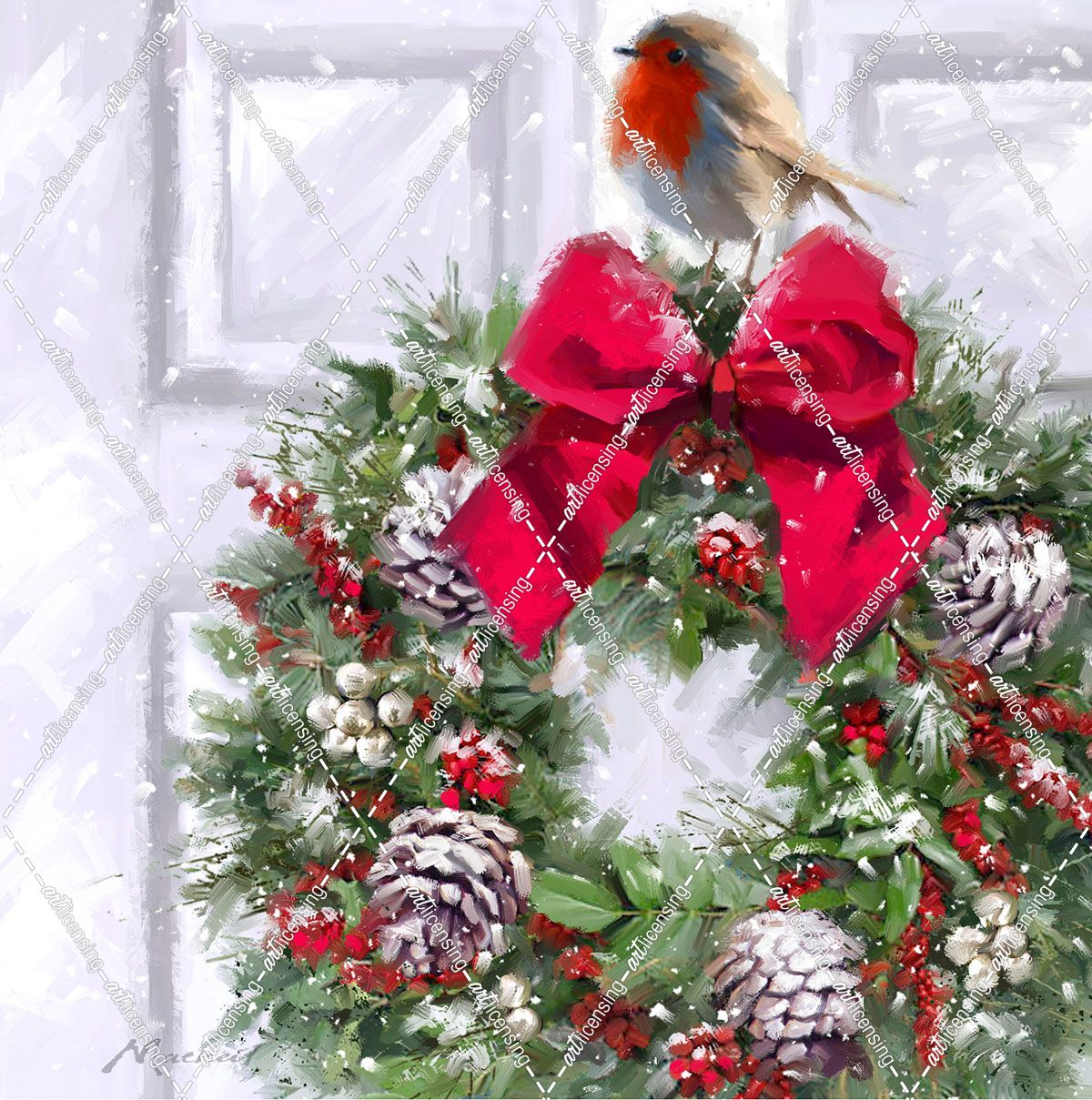 0857 Robin on Wreath Copy