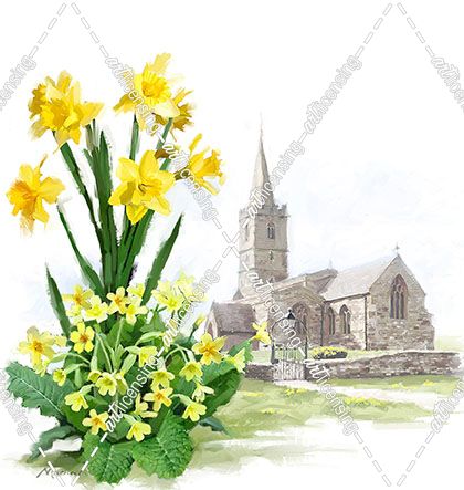 1212 Daffodils And Church