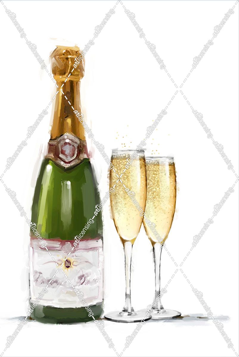 1441 Champagne Bottle and Glasses