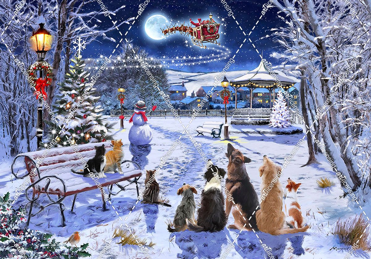 1908 Christmas Cats And Dogs In Park
