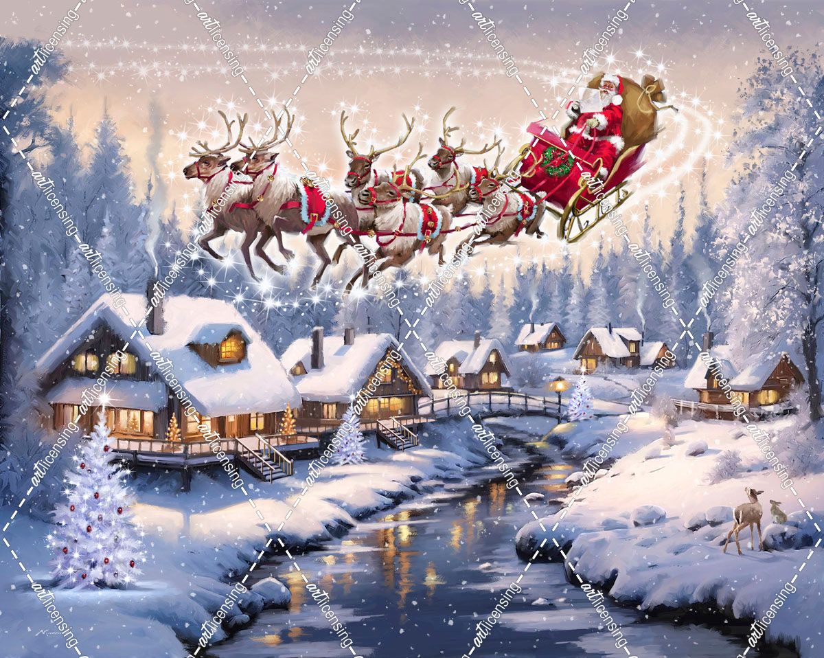 2222 Santa Over Snowy Village