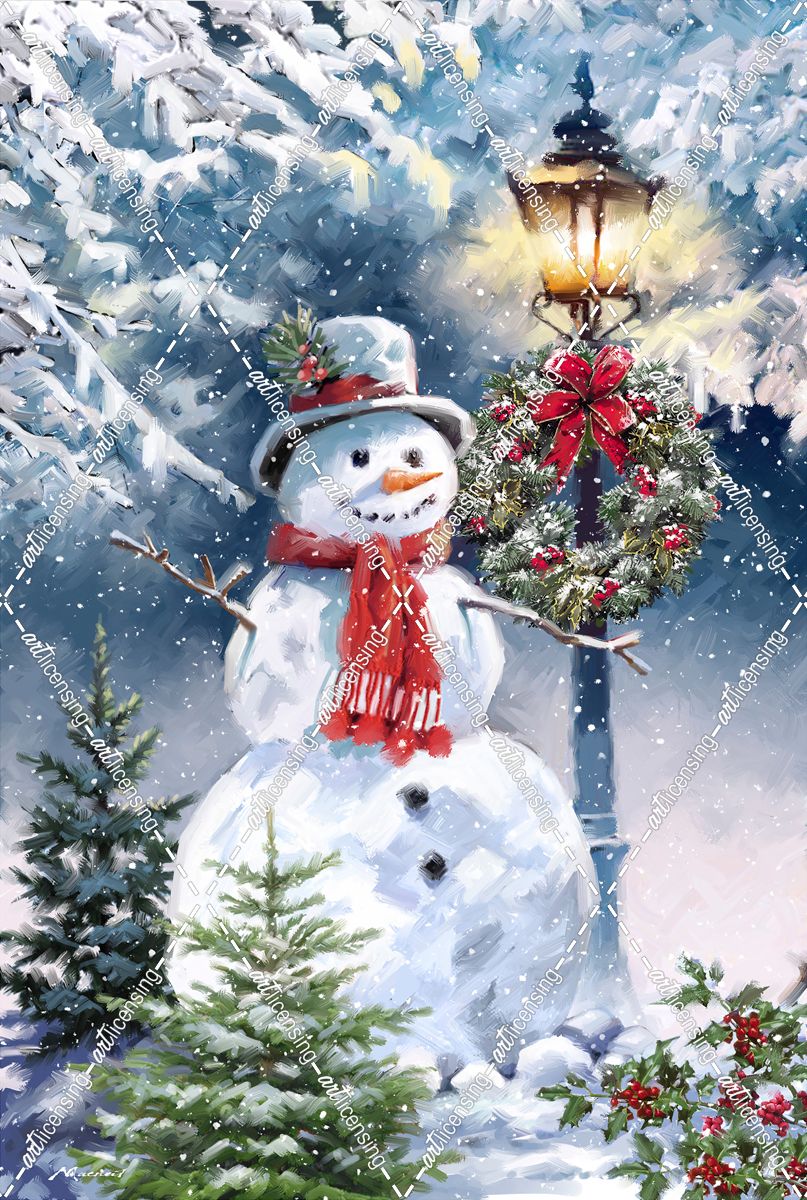2304 Snowman Under Lamppost