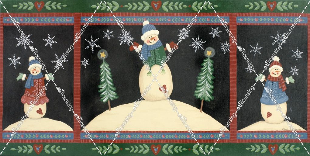 3 Snowmen On Black Background