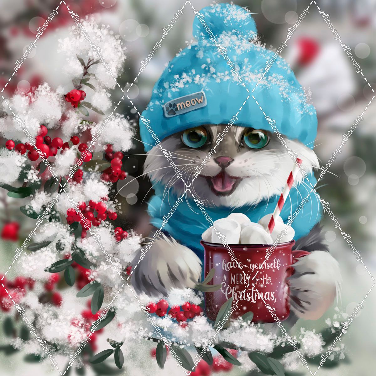 A Cat Drinking Cocoa Near A Branch Of Mountain Ash