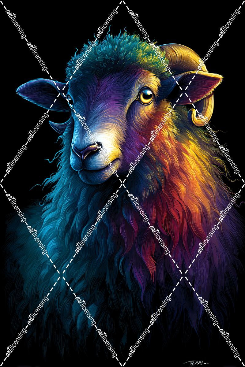 A Sheep With Vibrant Rainbow Color