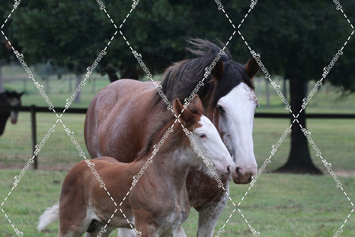 A21C0741 Clydesdale Mare & Foal, Horse Feathers Farm, TX