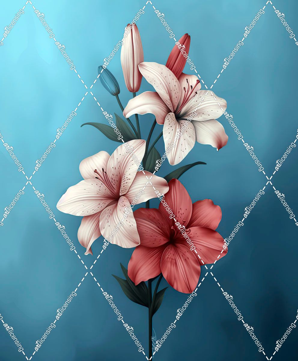 Abstract Pink And Blue White Lilies 4