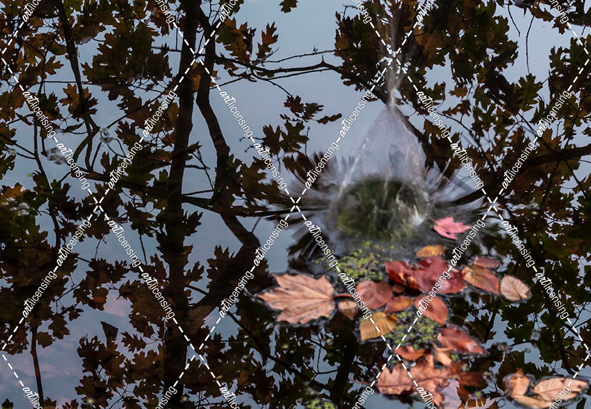 Acorn Falling Into Pond With Tree Reflections