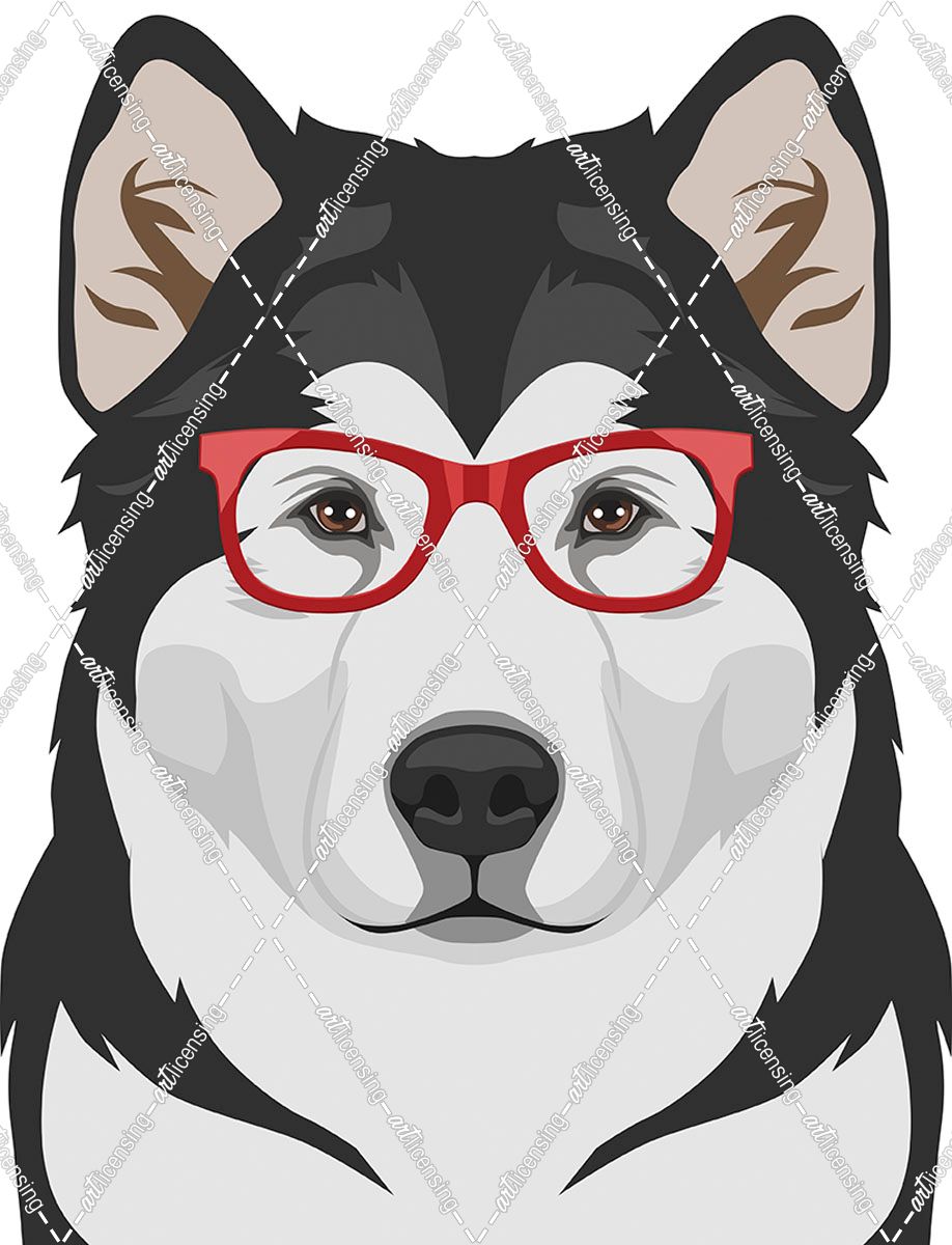 Alaskan Malamute Wearing Hipster Glasses