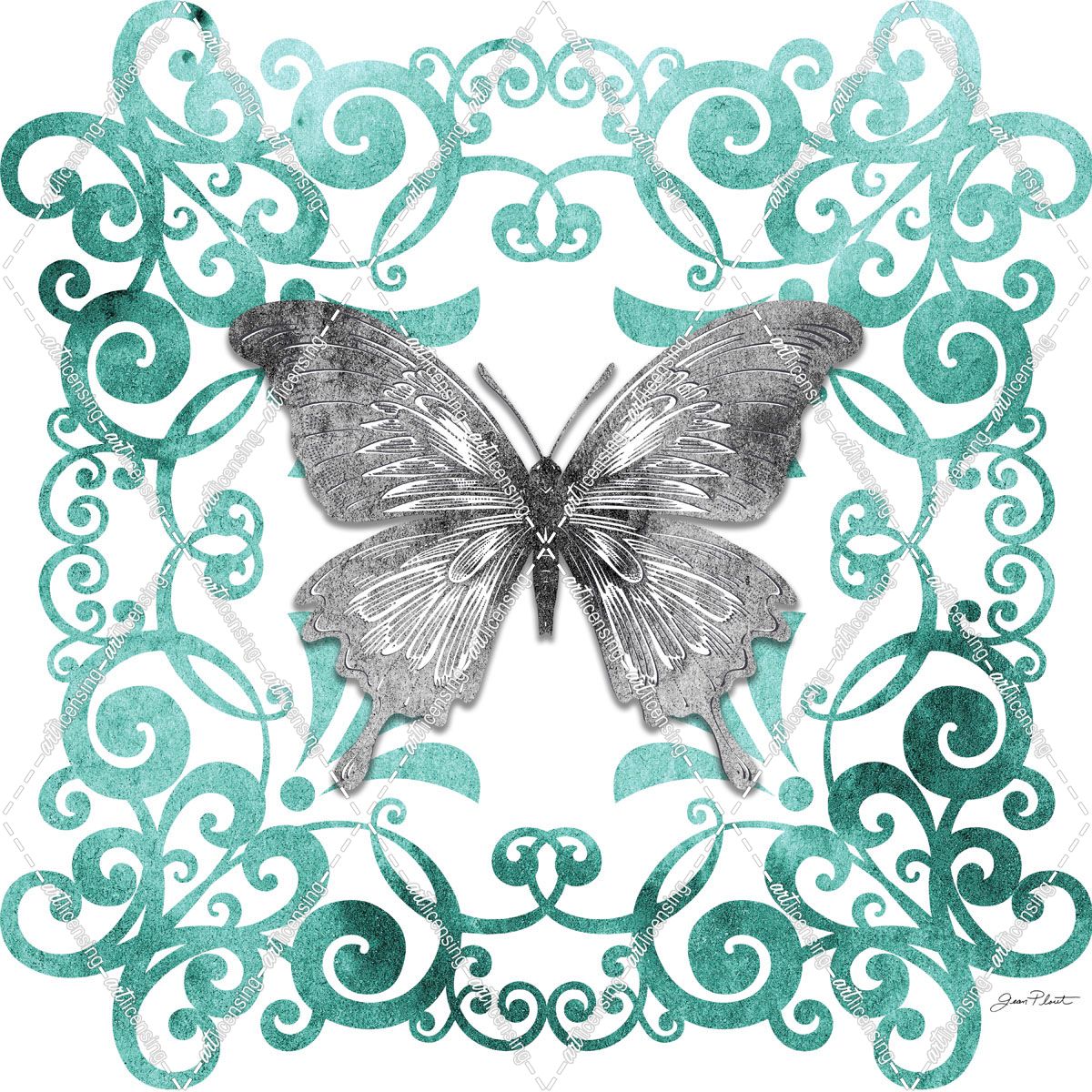 Aqua Tile With Butterfly A
