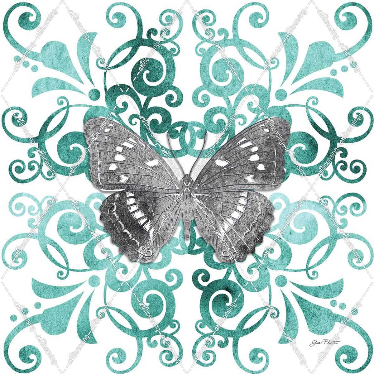 Aqua Tile With Butterfly B
