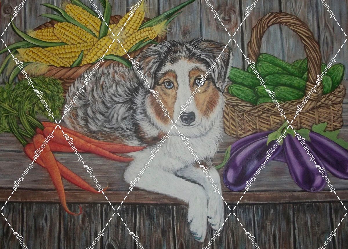 Australian Shepherd Dog With Vegetables