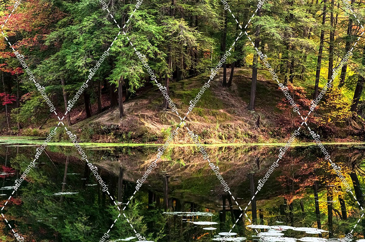 Autumn With Pines On Hill Lakeside