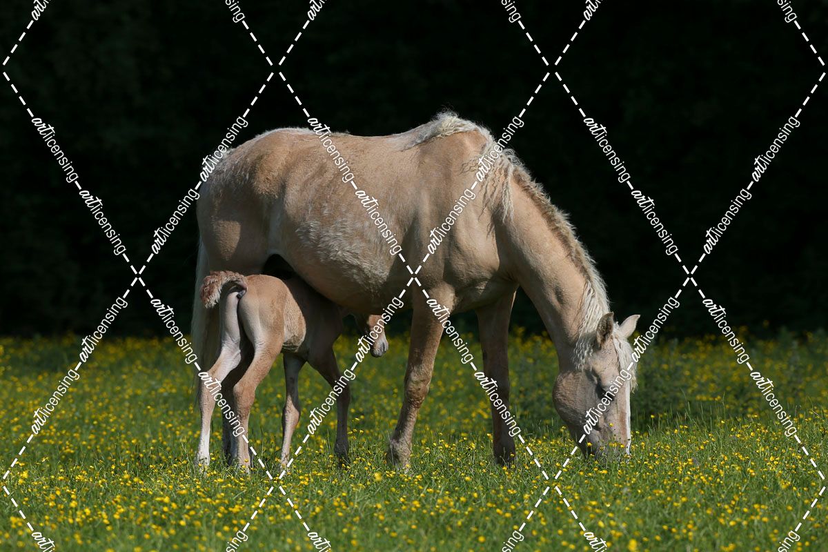 AY3V3796 Bashkir Curly Mare & Foal, Butts Farm, UK