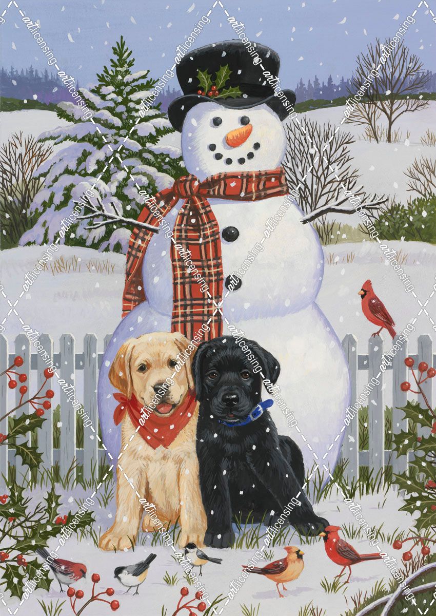 Backyard Snowman with Friends