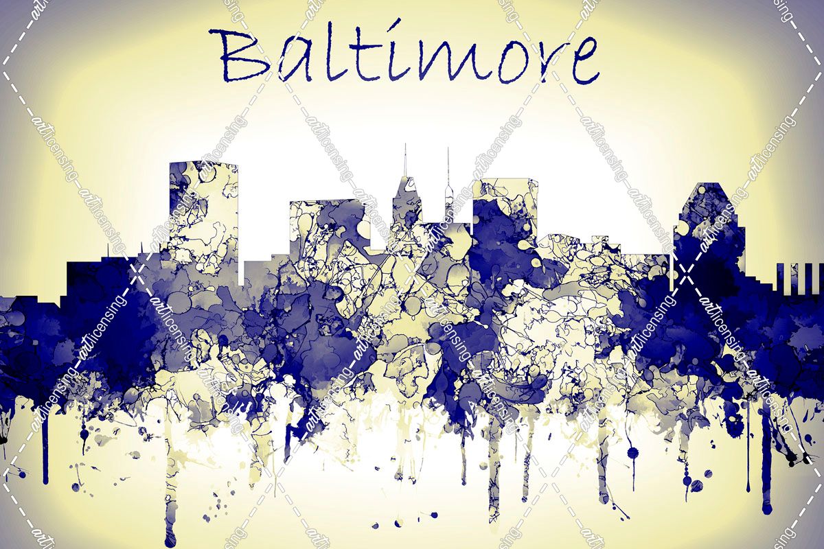 Baltimore Maryland Skyline-Harsh Blue Yellow