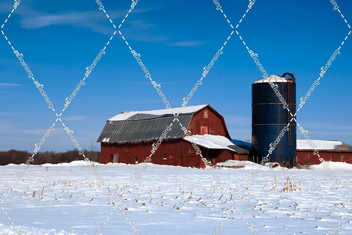 Barn And Silo In Winter