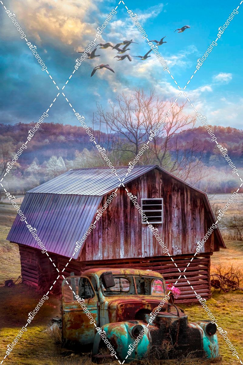 Barn and Truck Greeting the Day