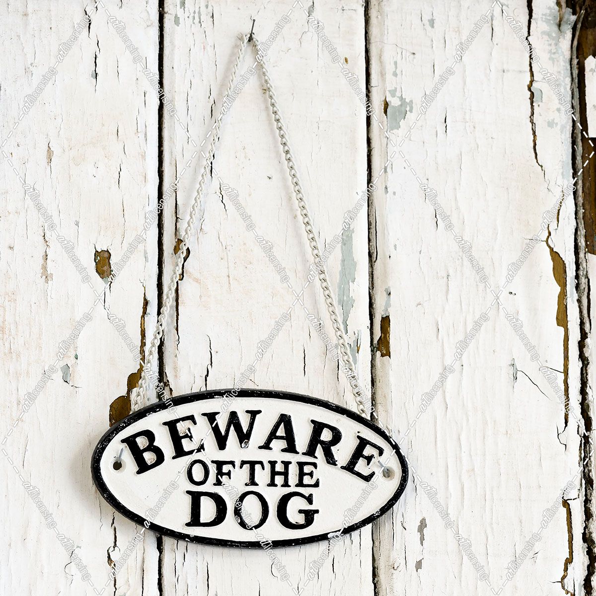 Beware of the Dog Sign on Antique Door