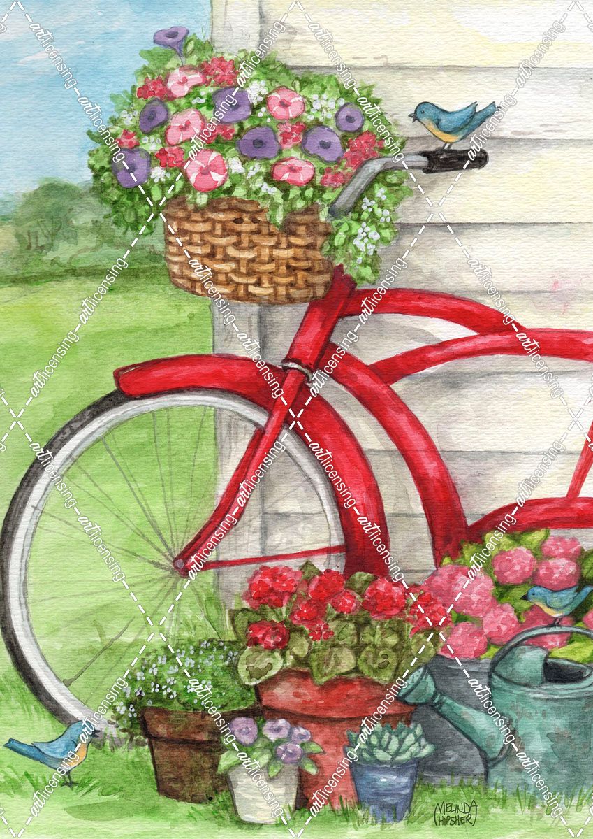 Bike With Birds And Flowers Flag