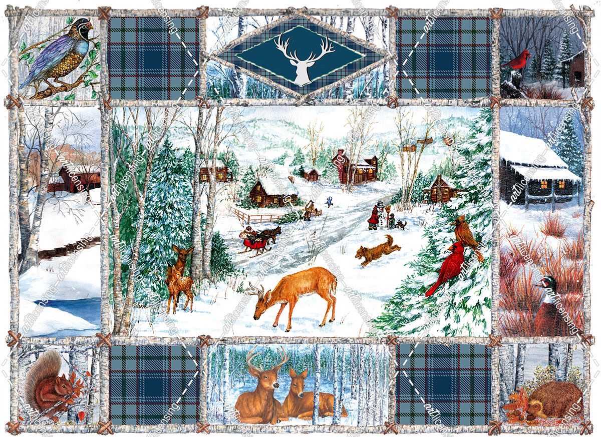 Birch Frame Winter Art-Blue Plaid