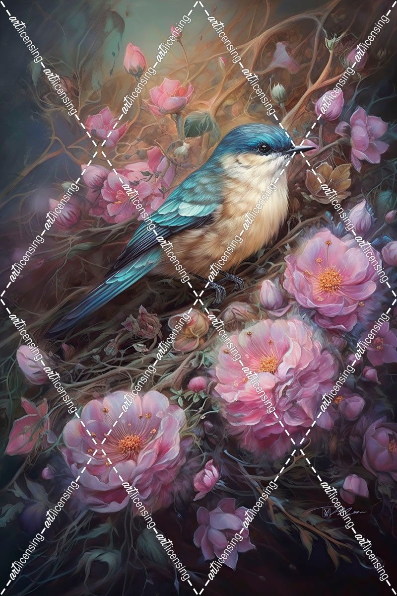 Bird In Nest With Dream Flowers (1)