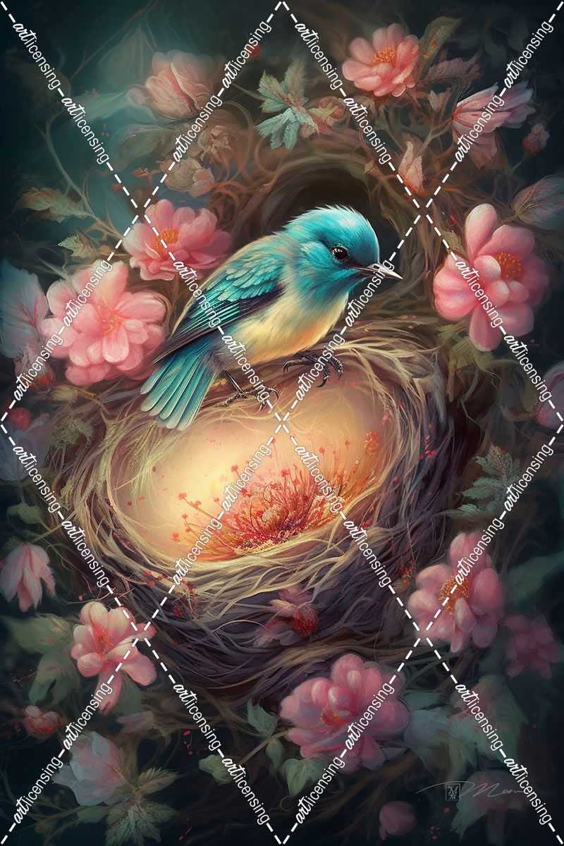 Bird In Nest With Dream Flowers (10)