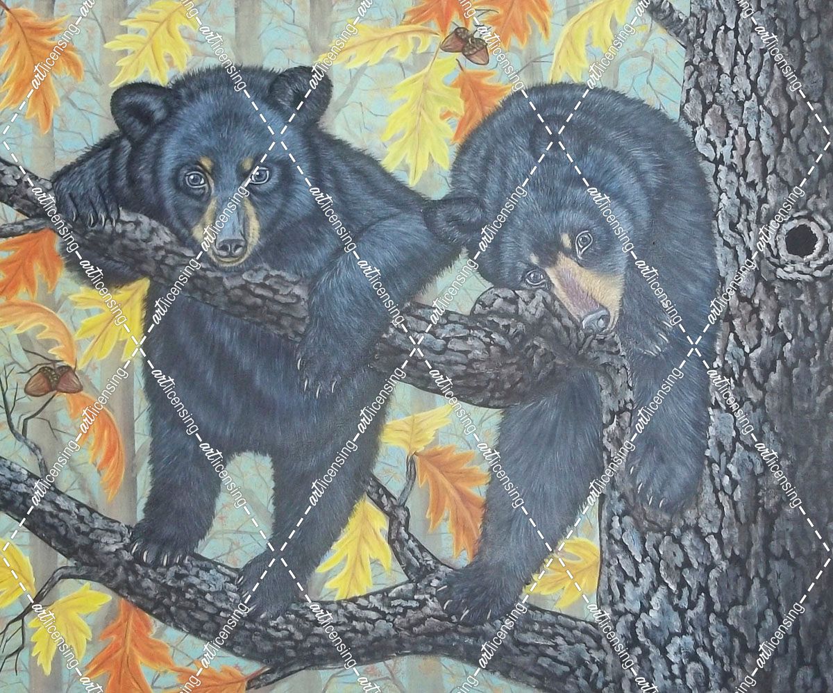 Black Bear Cubs On An Oak Tree