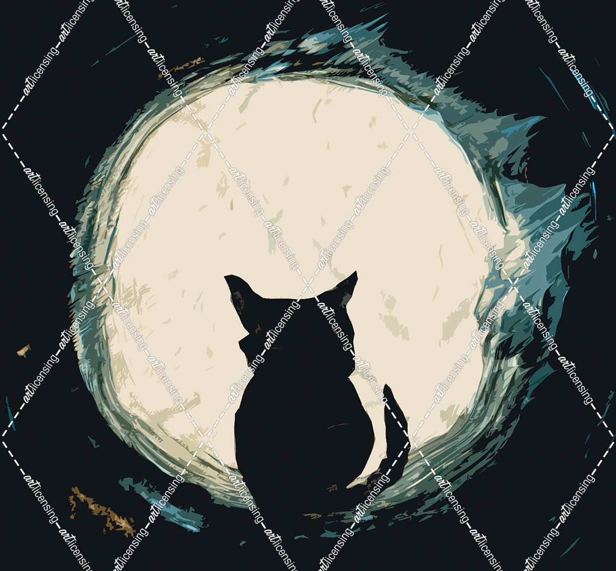 Black Cat Looking at the Moon