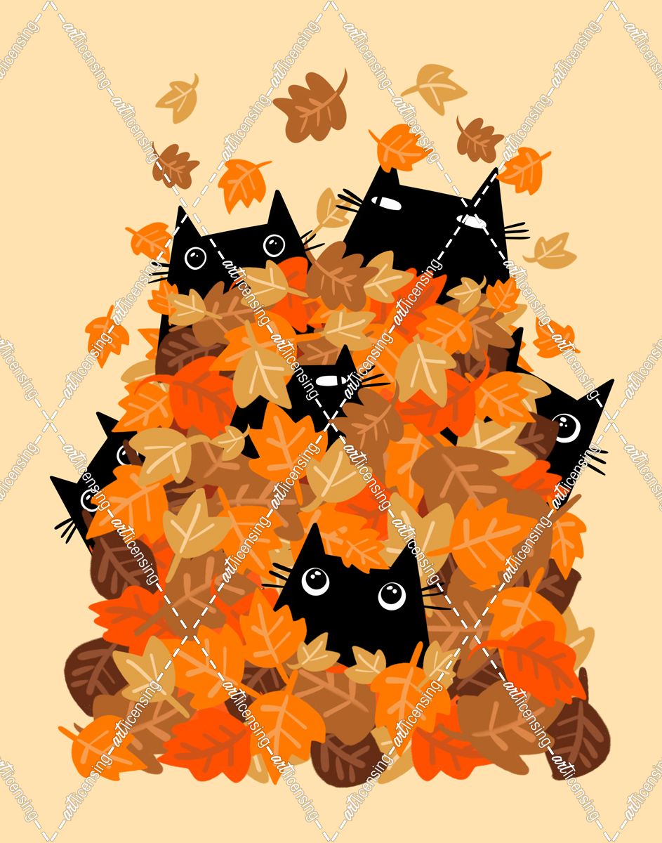Black Cats With Autumn Leaves