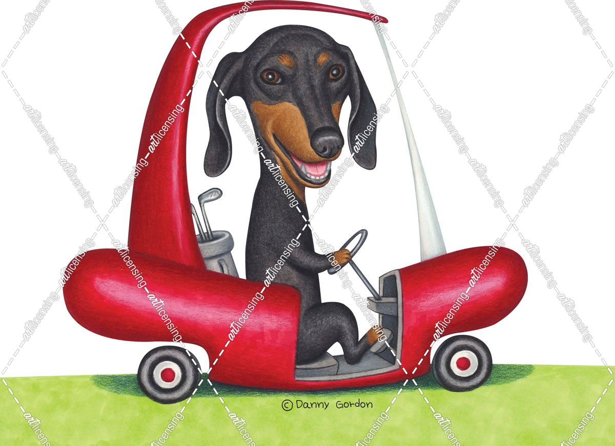 Black Dachshund in Golf Cart
