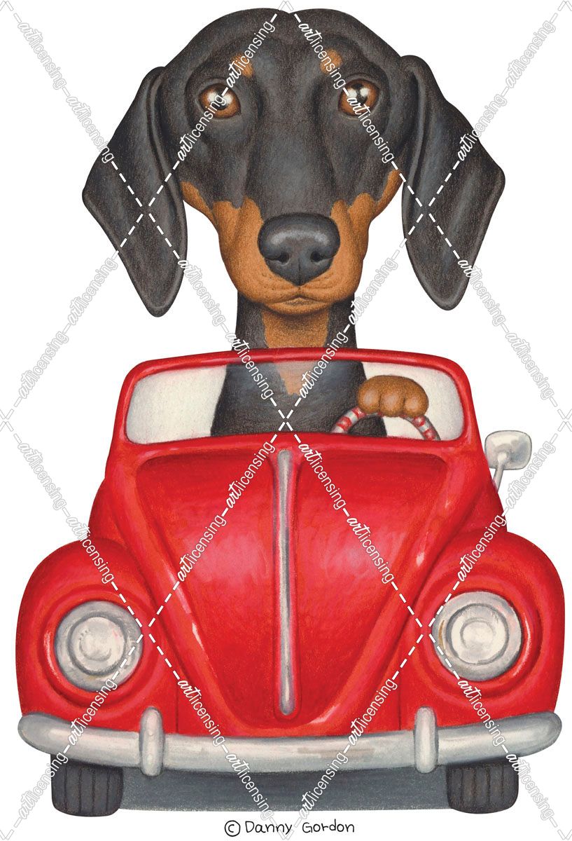 Black Dachshund Red Volkswagon