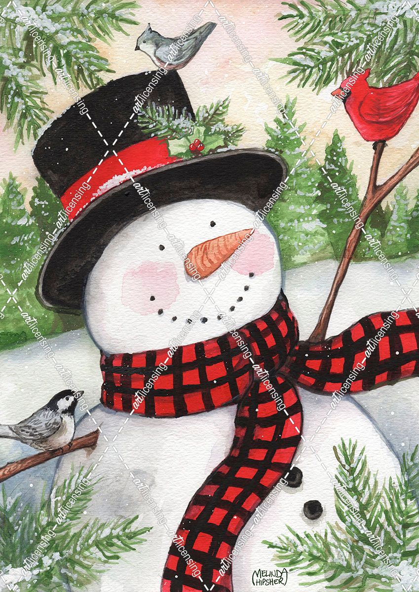 Black Hat Snowman With Birds