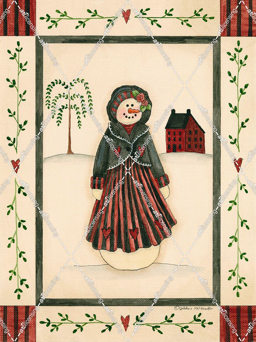 Black & Red Snowwoman With Red House
