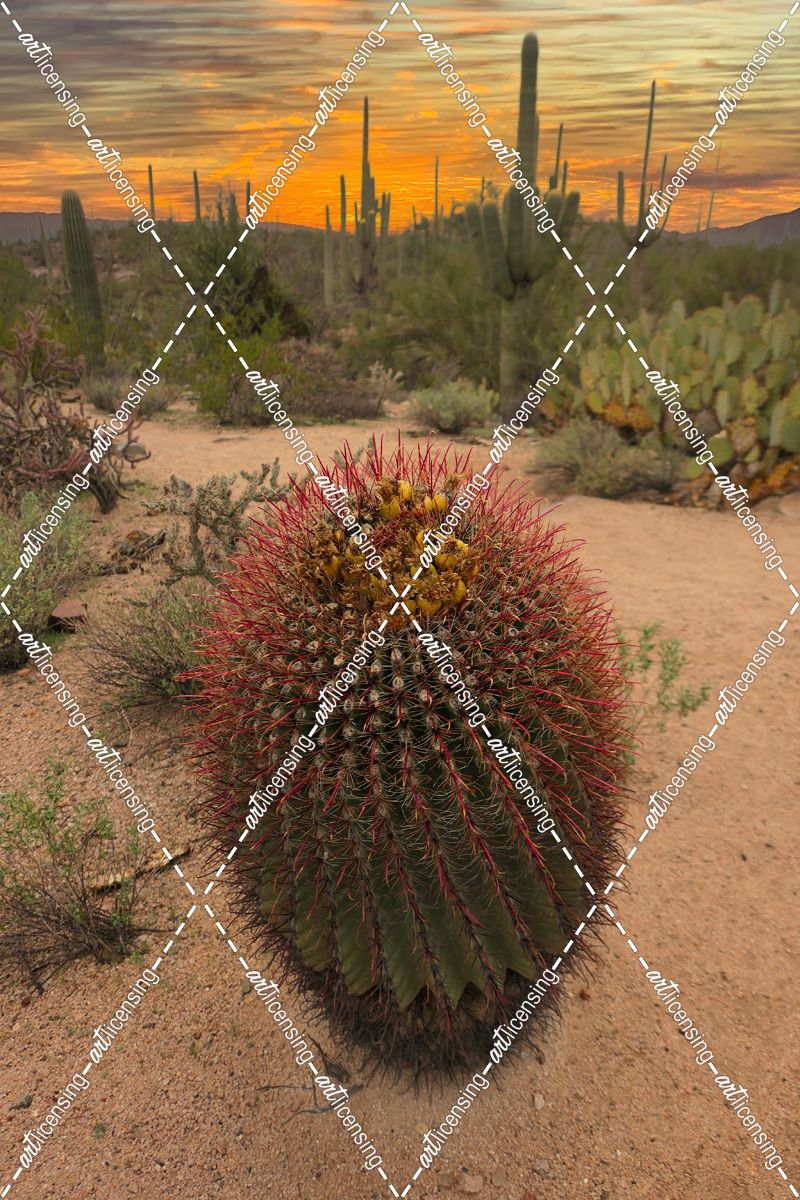 Blooming Cactus and Sunset