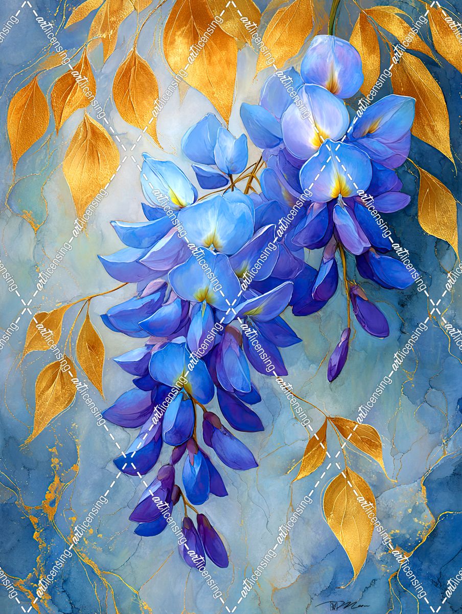 Blue And Gold Luxury Wisteria Painting (1)