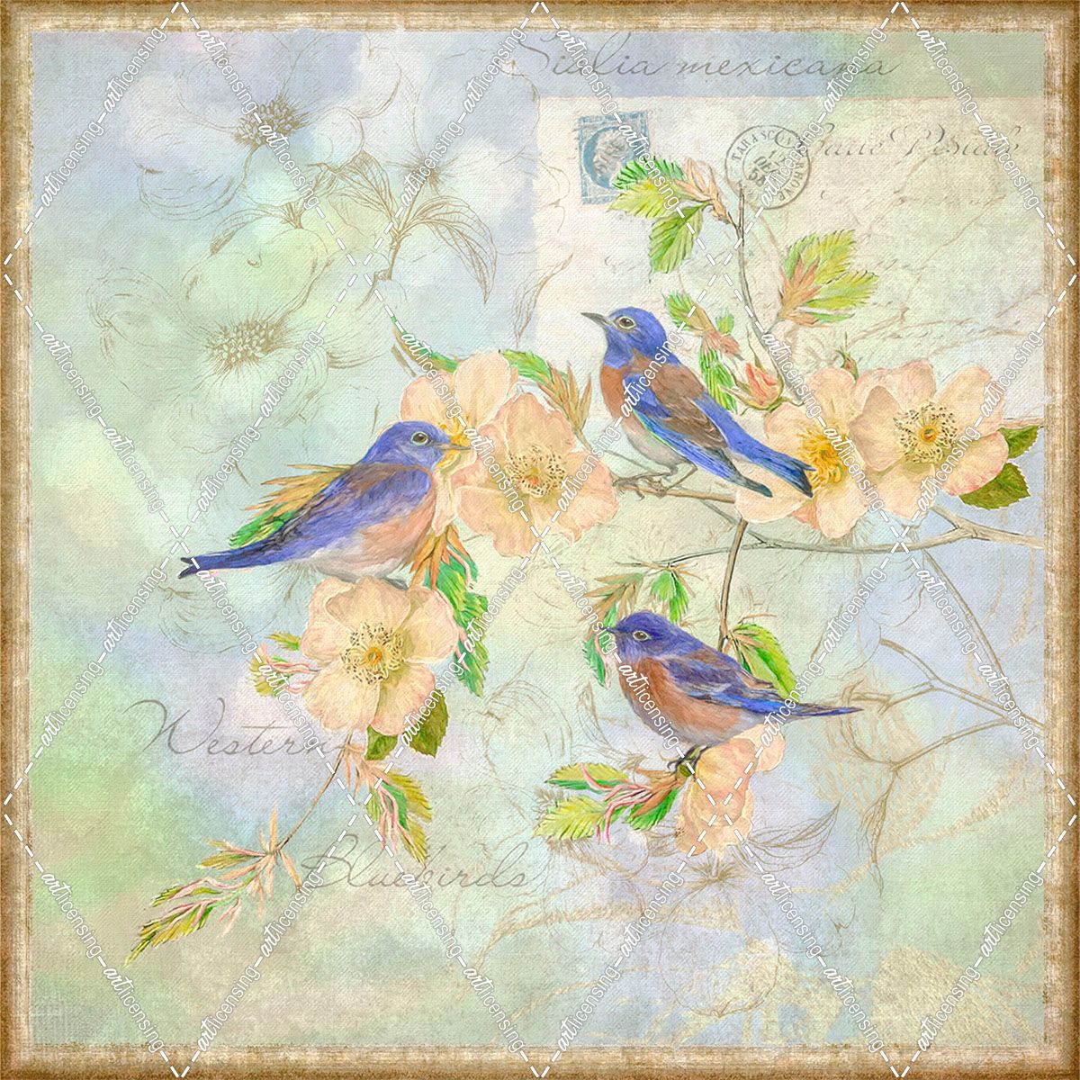 Blue Birds on Blossom Branch