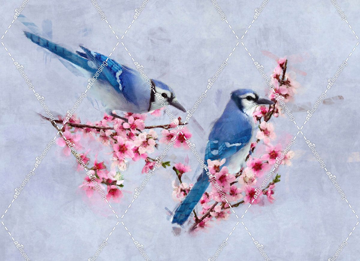 Blue Jays in a Peach Tree