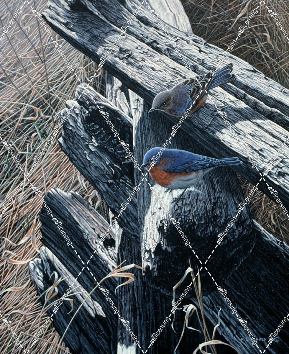 Bluebirds On Rail Fence