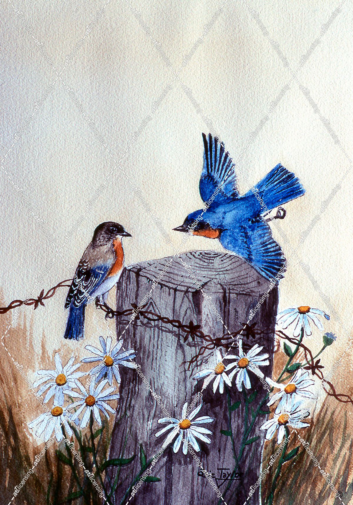 Bluebirds With Daisies 3