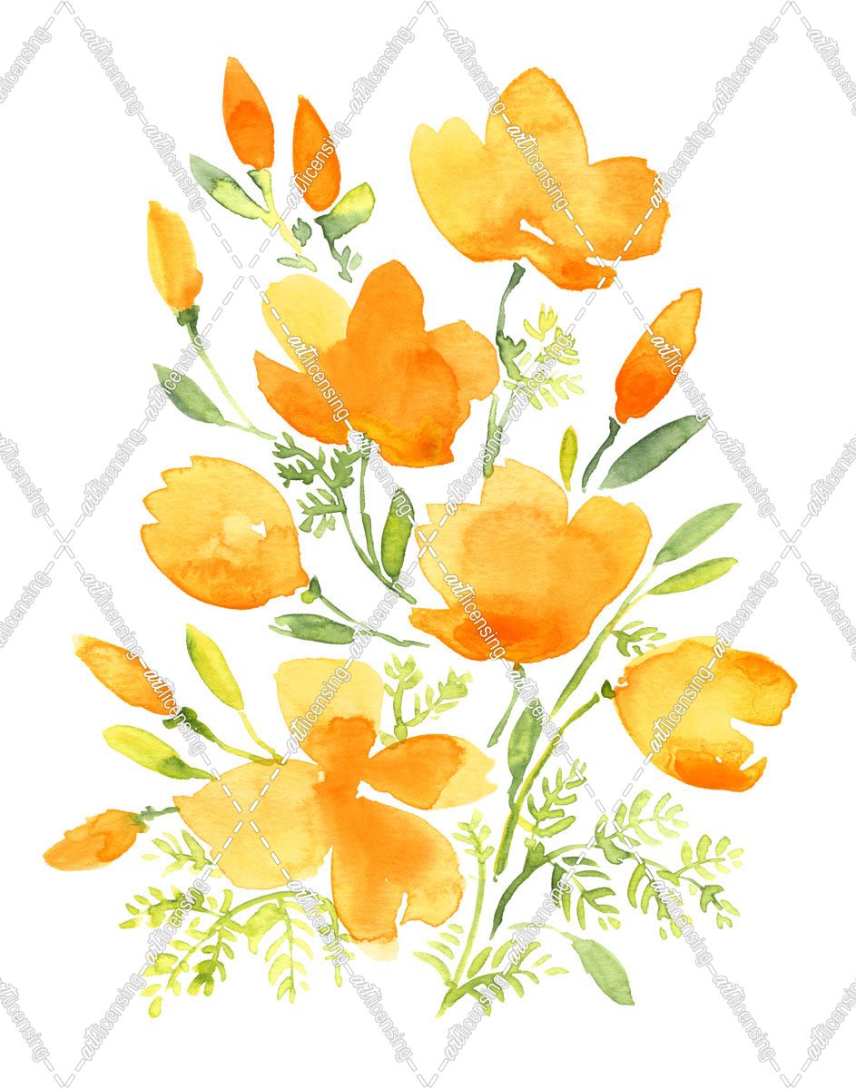 Bouquet Of Watercolor California Poppies