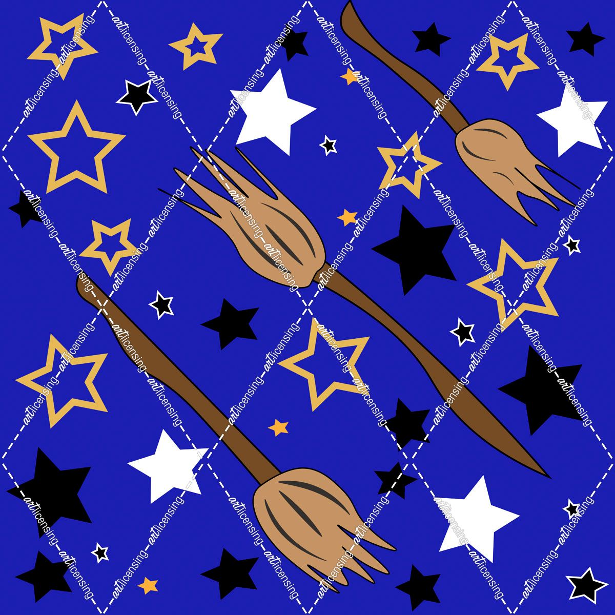 Broomsticks And Stars Repeated Pattern