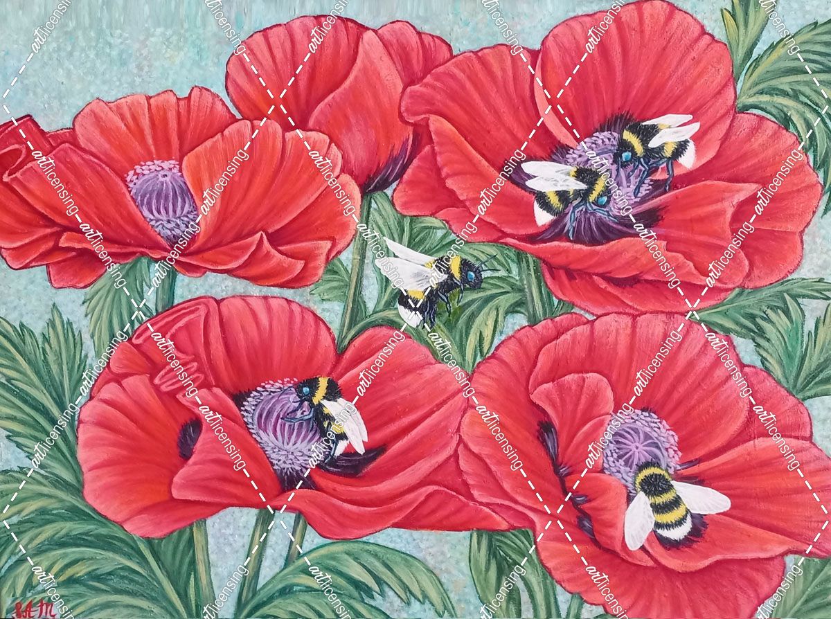 Bumble Bees and Poppy Flowers