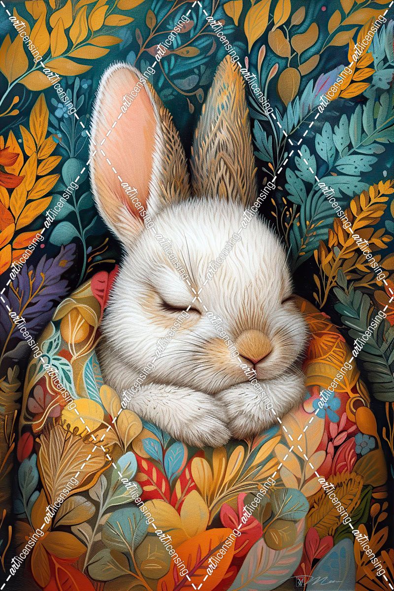 Bunny Sleeping Between Colored Blankets 1