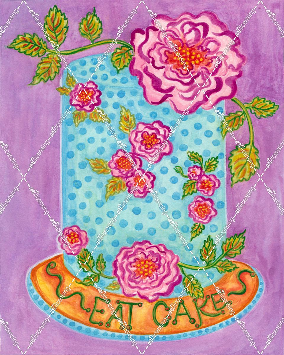Cake Blue Dots Pink Flowers