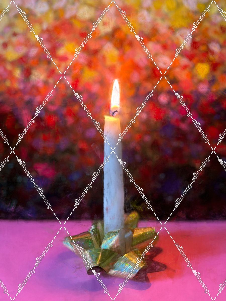 Candle And Bow With Painterly Background