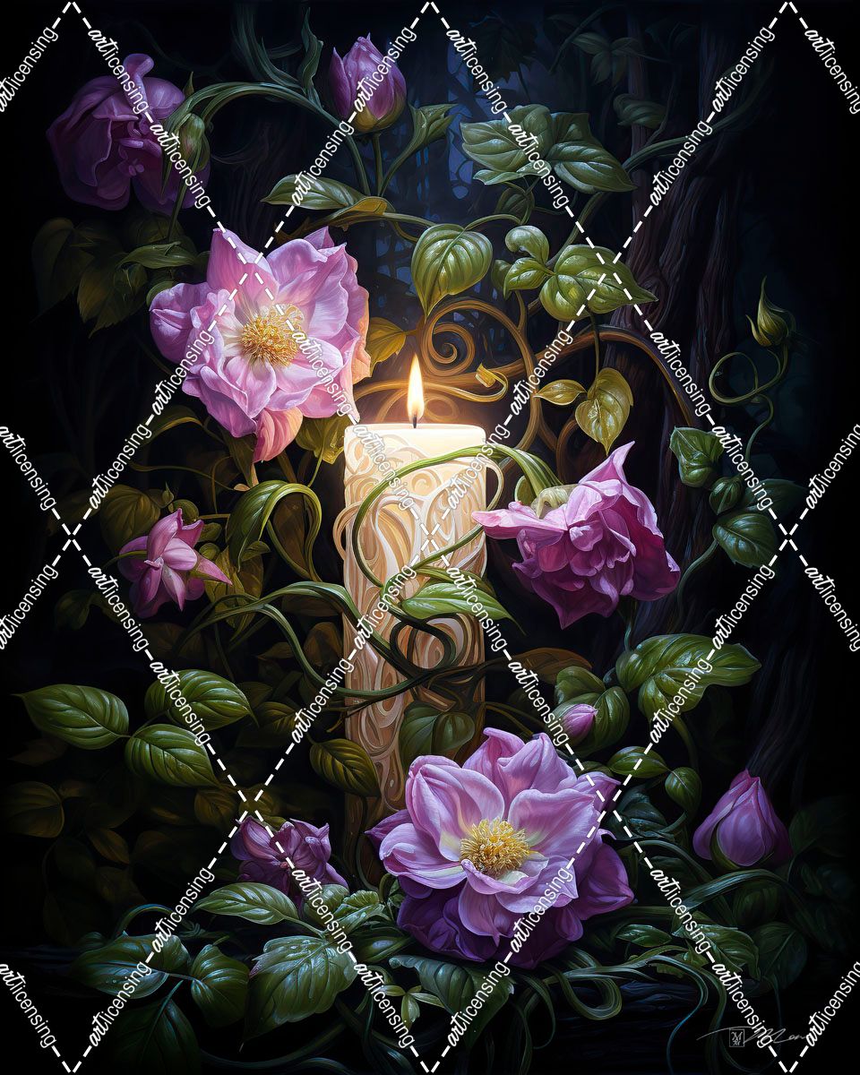 Candle With Pink Flowers