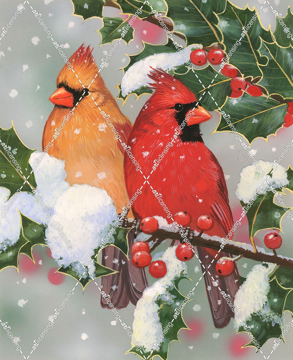 Cardinal Couple With Holly