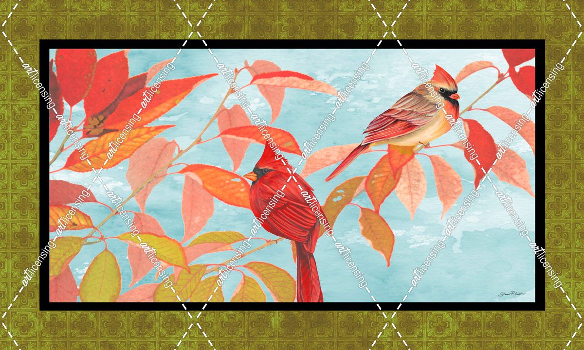 Cardinal Pair In The Fall-Green Border